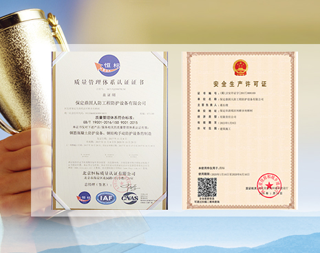 通過ISO9001質(zhì)量管理體系認(rèn)證、系國家人民防空辦公室批準(zhǔn)的人防防護(hù)設(shè)備定點(diǎn)生產(chǎn)和安裝企業(yè)